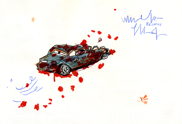John Rasimus mixed drawing on white paper 15x 21cm (6x8,4´).
