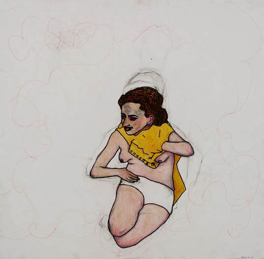 (69x 68cm) Blandteknik, akrylfärg,tusch och färgpennor blyerts på mdf-board/Mixed drawing media on akrylic mdf-board (27x 26 inch).