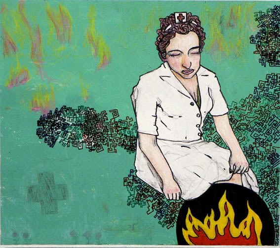 Nurse and open fire. (58 x 51 Cm.) John Rasimus 2004.
