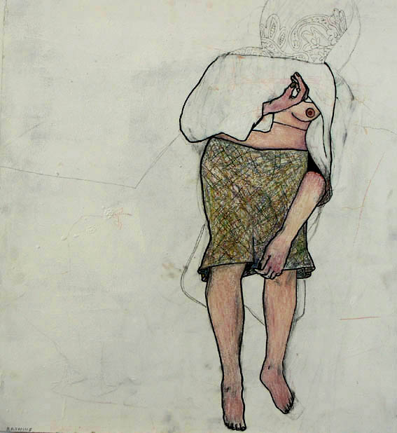 (65x 72Cm) Blandteknik. Akryl, tuschpennor, blyerts samt färgpennor på MDF-Board./Mixed drawing media on akrylic mdf-board.(25x 28 inch)