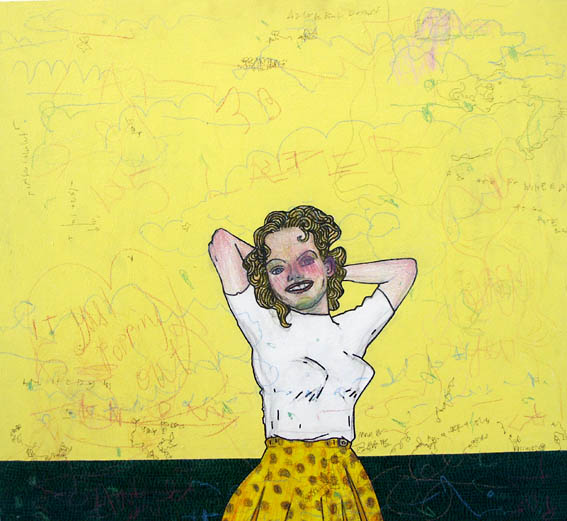 Blandteknik akryl,tusch och färgpennor blyerts på mdf-board/ Colour pen,pencil, ink mixed media on mdf-board.27x 25 inch