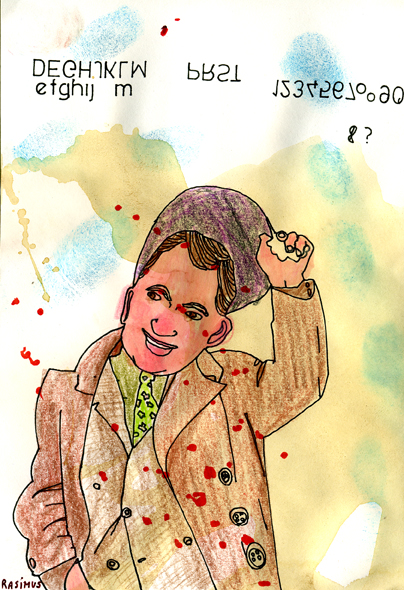 John Rasimus mixed pen drawing and coffe on white paper 15x 21cm (6x8,4 inch).