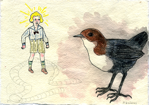 -Child and big bird.