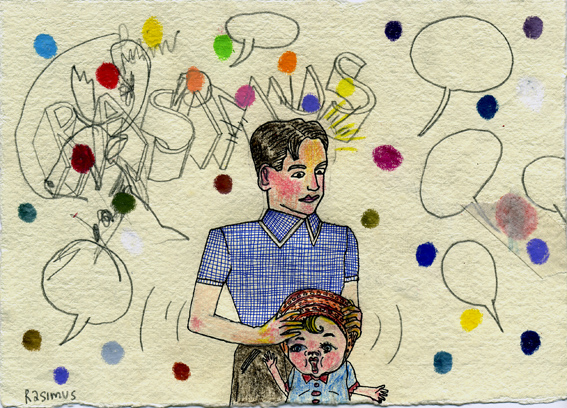John Rasimus 15x21 cm teckning på papper. John Rasimus mixed drawing on paper 6x8 inch.